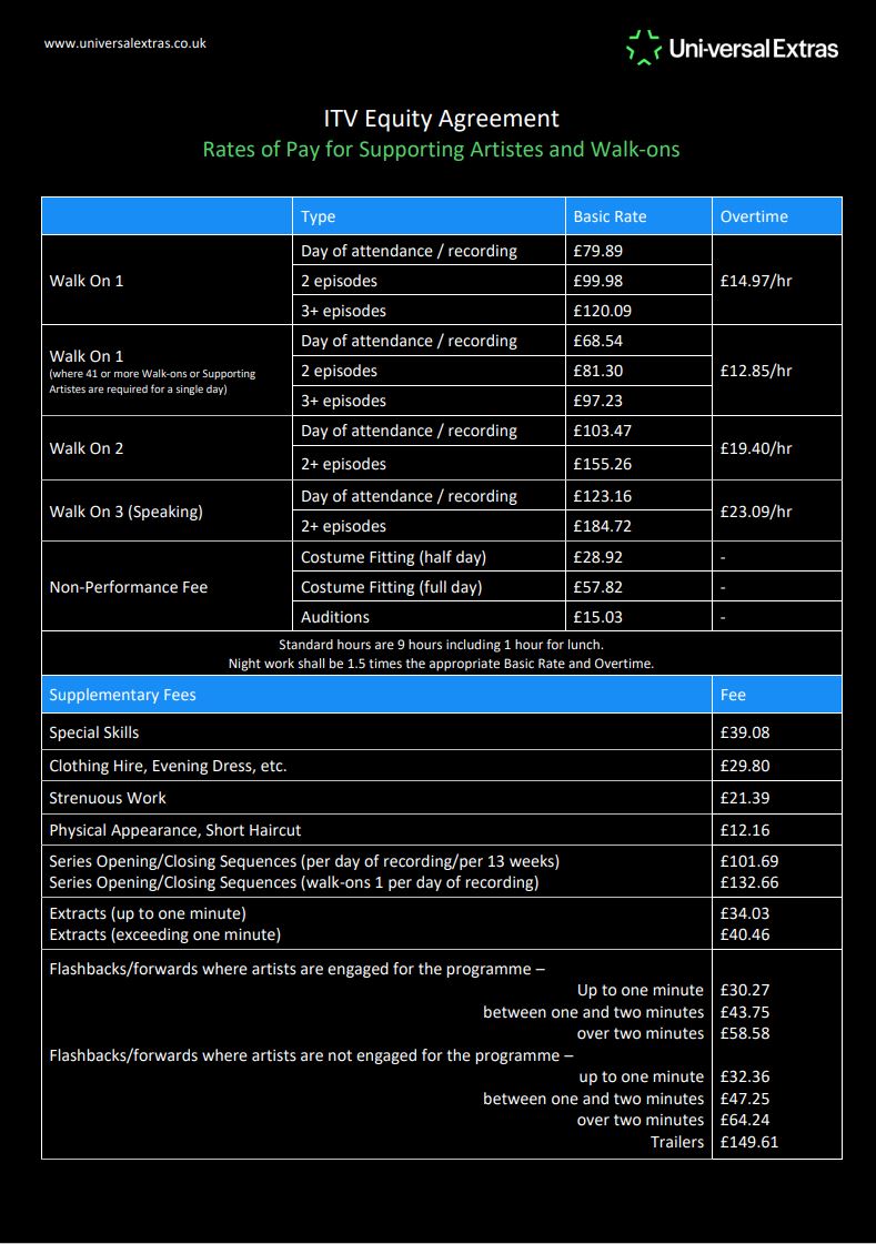 If you are already booked on a production using ITV rates and have any questions about how this affects you, please call our friendly Casting Team and we will be happy to answer any questions you may have.