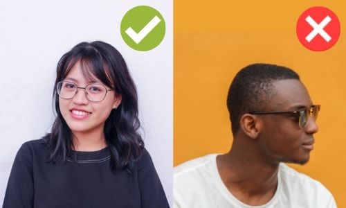 We do not accept photos that include unnecessary accessories that take away from your features. These include things such as hats, sunglasses or large earrings. If you are a glasses wearer but are able to wear contact lenses or no glasses at all, make sure you upload a photo to your profile without glasses.
